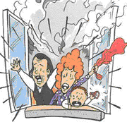 (4)千万不要趴在床下、桌下或钻到壁厨里躲藏,也不要为抢救家中的贵重物品而冒险返回正在燃烧的房间。
